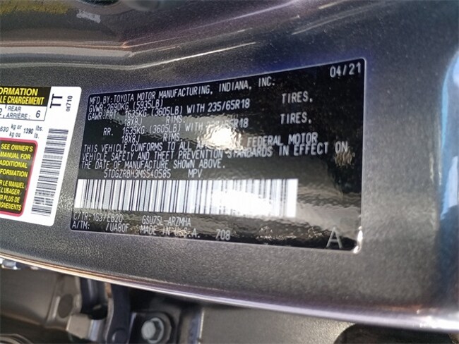 - VIN : 5TDGZRBH3MS540585
