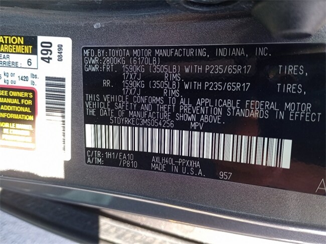 - VIN : 5TDYRKEC3MS054256