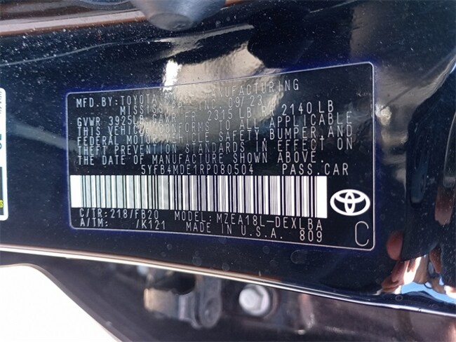 - VIN : 5YFB4MDE1RP080504