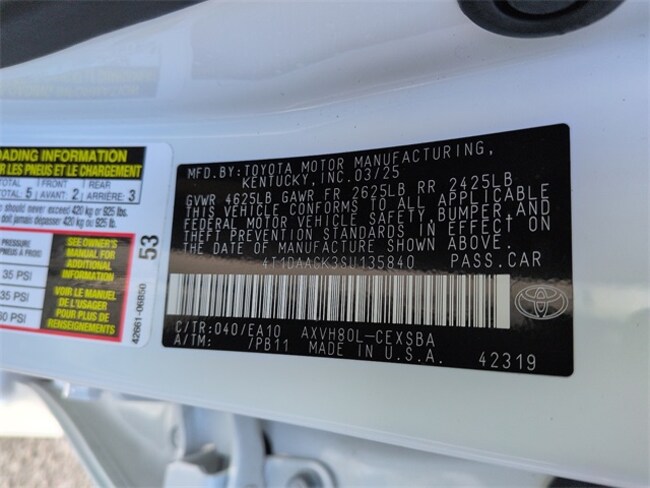 - VIN : 4T1DAACK3SU135840