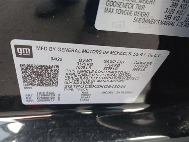 - VIN : 3GTPUCEK2NG543044