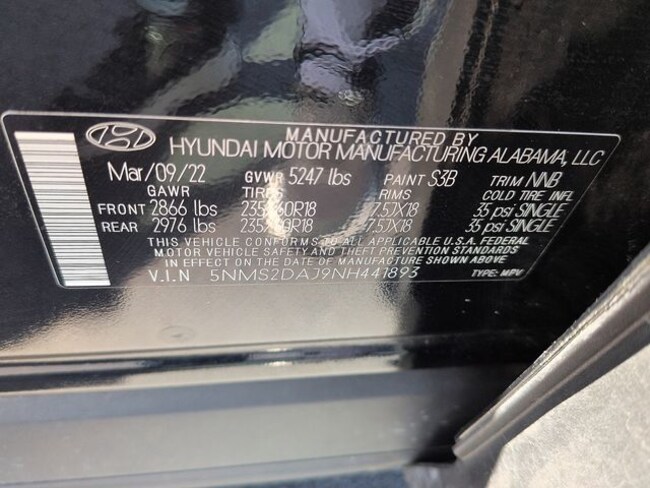 - VIN : 5NMS2DAJ9NH441893