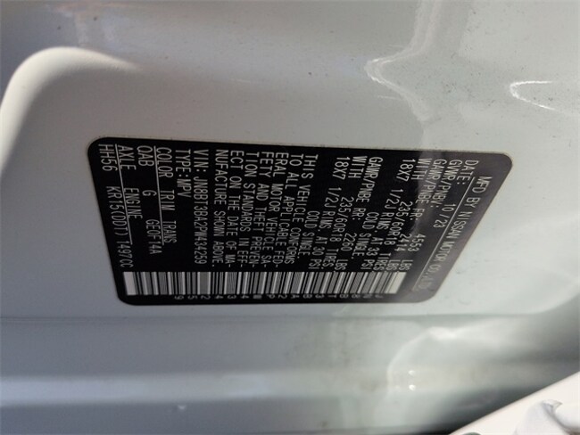 - VIN : JN8BT3BA2PW434259